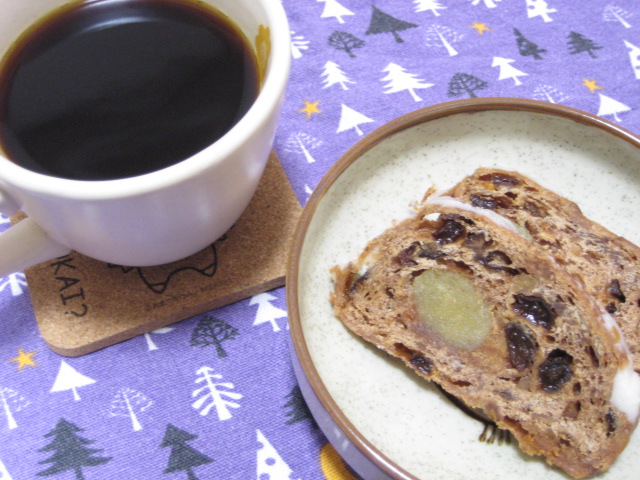 ちなみに、今年のシュトーレンは京都知恩寺手づくり市に行った際、ラミ・デュパンさんというベーカリーで購入したものです。甘さもアイシング部分以外はそれほど強くなく、美味しくいただいてます。