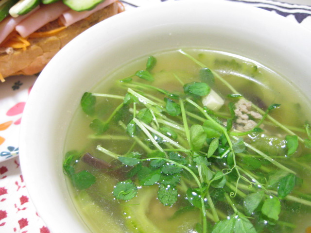 ここでは豆苗を使っていますが、春菊や水菜といった葉物でも美味しいです。その他、春雨を加えてもいいですし、キノコ類もいいですね。