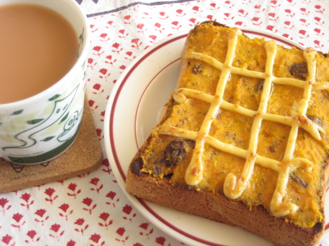 1)食パンでトーストを作ったら、お好みで熱いうちにバター類を片面に塗る。