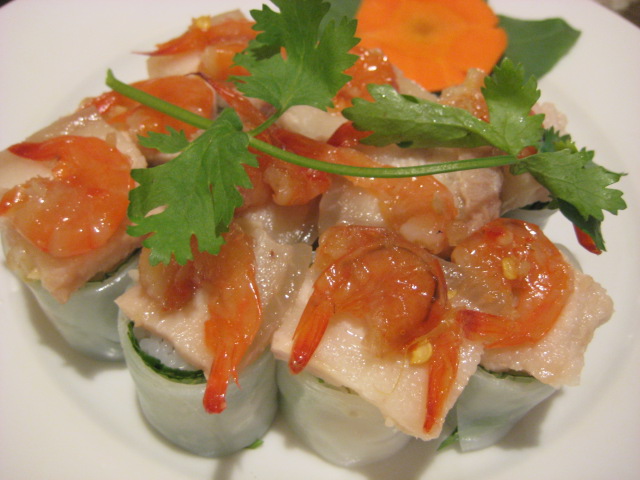 まずは前菜生春巻と揚げ春巻(南部風サラダとメニューにはありました。まぁ、揚げ春巻はつくねや野菜と一緒に別添えのライスペーパーに包んで食べるので、サラダ感覚ではありますね)