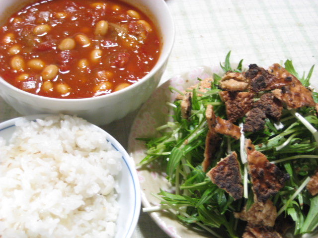 そんなわけで、この日のメインは冷凍していたポークビーンズで。アバラつき豚肉のストックはまだあるんで、また月が開けたらポークビーンズを煮ようかな~。