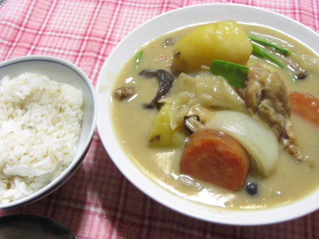 昨日の夕飯。副菜を作るかどうか悩んだんですが、シチューに野菜がたくさん入ってるし、もういいかと割愛(苦笑)