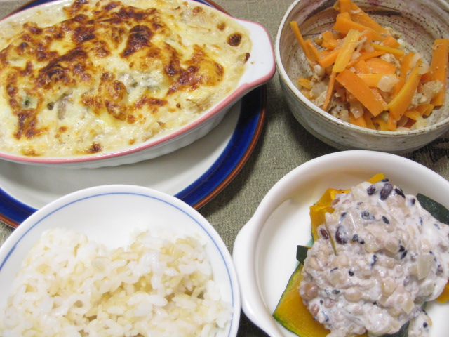 昨日の夕飯(2/7):茄子と玉ねぎのグラタン他