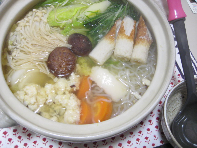 あ、そういえばここで使ってる肉団子、煮込みすぎてちょっと崩れちゃってるんですが、最近まとめて作ったのを冷凍して、必要に応じた数をその時ごとに出してるんですが、これがなかなかに便利がいいんです。挽肉とおからを混ぜてるんですが、繊維質を多くとりたい/カロリーを落としたい/節約したい、ということもあって、ひき肉とおからがほぼ等量です。なので、噛みしめた時肉っぽさは感じにくいかもしれませんが、食感自体は悪くないし、ひき肉だけで作った場合よりも硬めの団子ができるので、冷凍庫で凍るまでの間に形がへしゃげたりというのがそれほどでもなく、かつ使用の際に凍ったまま取り出しやすいという利点が。味が淡泊なので和洋中どんな料理にも合わせやすいですし。