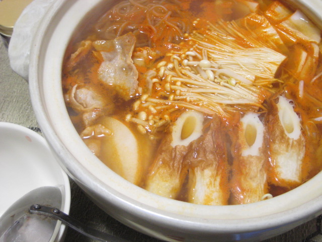 3月に入って寒さも和らぎそうなので、今のうちに買ってあった鍋スープを使ってしまおうと、この日はキムチ鍋。