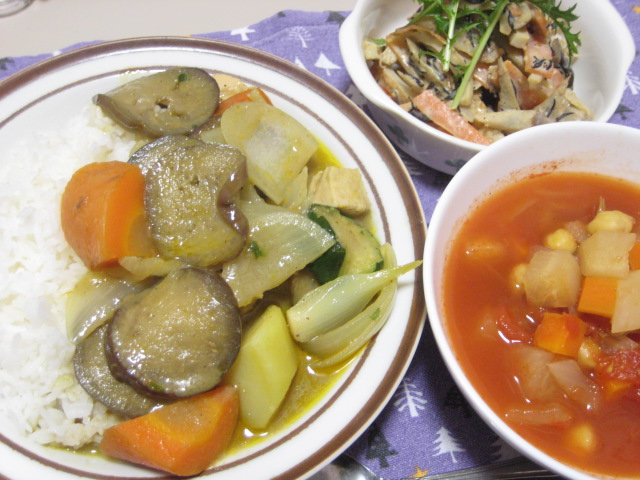 副菜はゴボウとひじきのサラダ。これも常備菜用に少し多めに作りました。三日くらいなら冷蔵庫で余裕で持つので、最近仕事のある日は夕飯が極端に遅くなってきてるし、休みの時にこうしたストックを作らねばと準備。あ、ちなみにこの日の味付けは味噌マヨベースです。