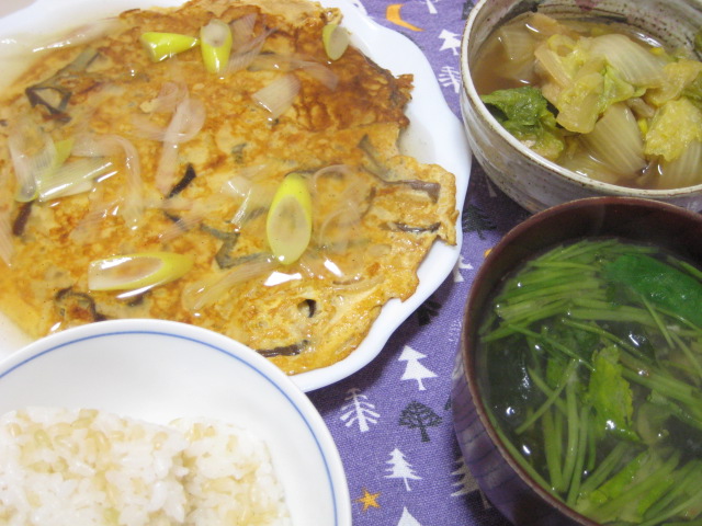 卵に余裕があるうちに作ろうと思いつつ、気付けば買った卵の大半消費してから、これ作ることになっちゃってましたね(苦笑)切り干し大根の戻し汁は、茹でるのに使った後で、味噌汁を作るのにそのまま流用。旨味が出てるのに捨ててしまうの勿体ないですからねー。ちなみにこの日のあんかけは中華ベースのあっさり系。