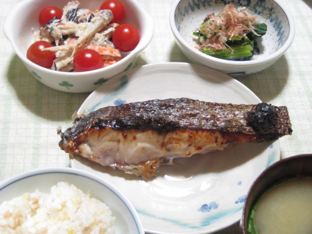 昨日の夕飯(4/26):焼き魚(塩麹漬け)他