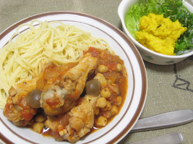 昨日の夕飯(5/20):手羽元とヒヨコ豆のトマト煮込み他