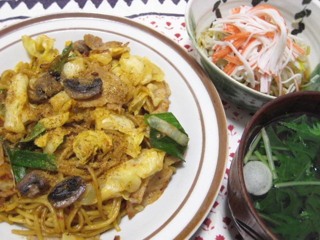 昨日の夕飯(5/9):ニンニク醤油焼きそば他