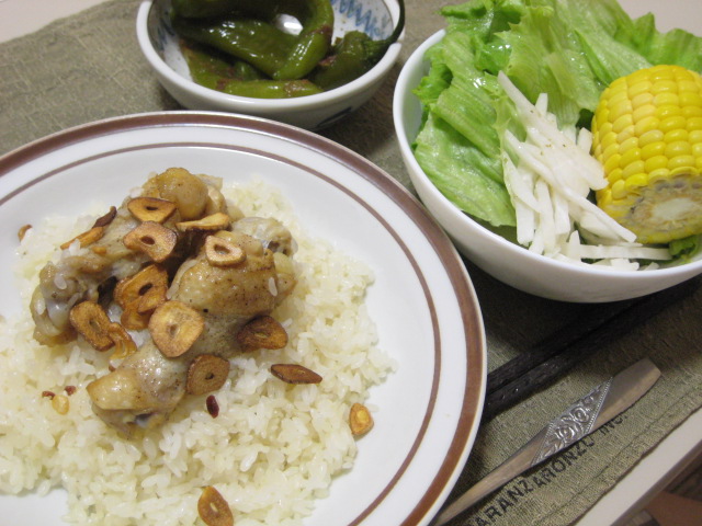 昨日の夕飯(7/15):シンガポール風チキンライス他