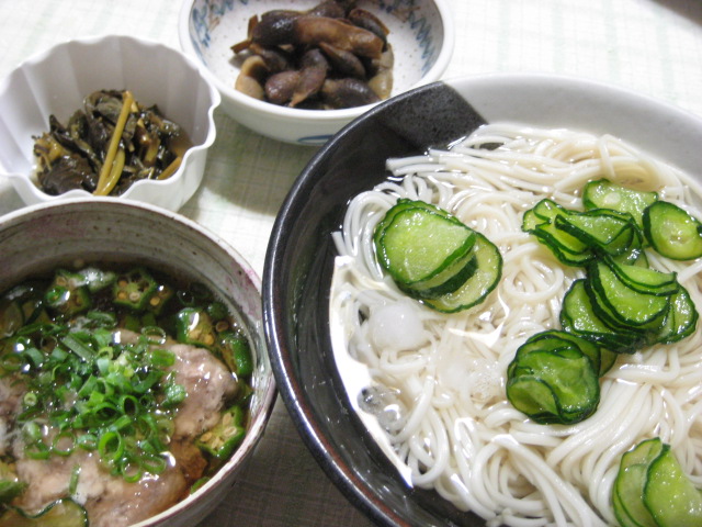 昨日の夕飯(8/13):冷麦他