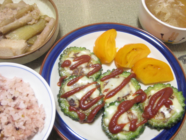 あと思い付きで、火を止める直前にピザ用チーズを載せてみたら、ゴーヤの苦味を上手く包んでくれてました。苦味な苦手な人にはこの方法はアリですね。