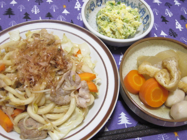 この日は焼うどんにしたんですが、いつもと趣向を変えて、醤油で味付けする代わりにポン酢を使用してみました。思ったよりも美味しいです。サッパリしてるので食欲のない夏向けかも。あと、塩分を控えたい人向け?(酢の酸味が塩気が少なくてもカバーしてくれますし)食べる際に七味を振ってみたんですが、これもまたよかったです。