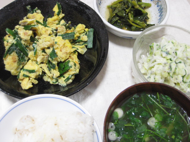 いやもう、この日作ったのは実質的に、このチアシード入りポテトサラダだけです。あとの鶏ひき肉とニラの卵焼きも、モロヘイヤのおひたしも、余分に作って冷蔵庫にストックしていたものなのでw