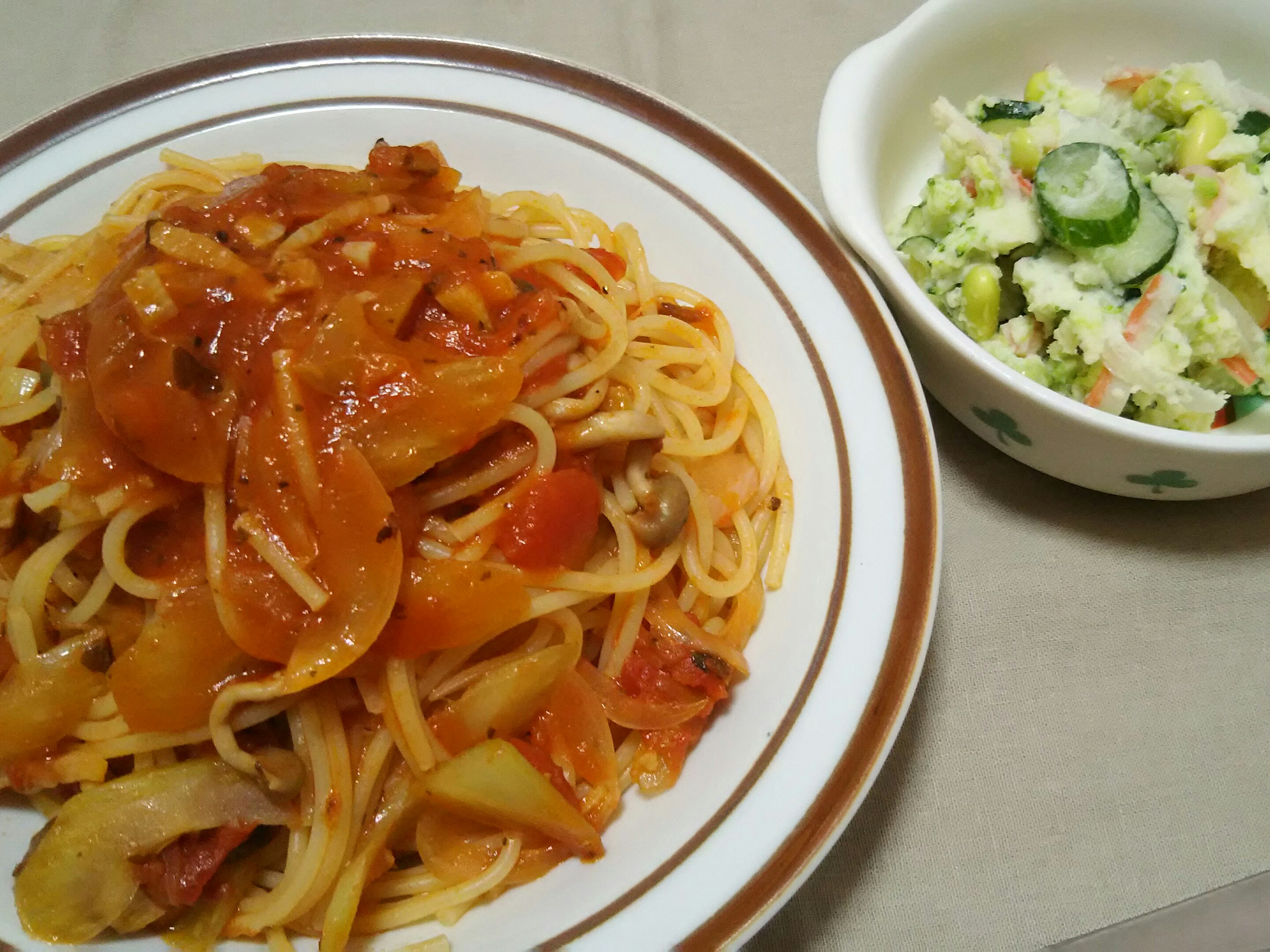 昨日の夕飯(6/11):トマトとパンチェッタのパスタ他