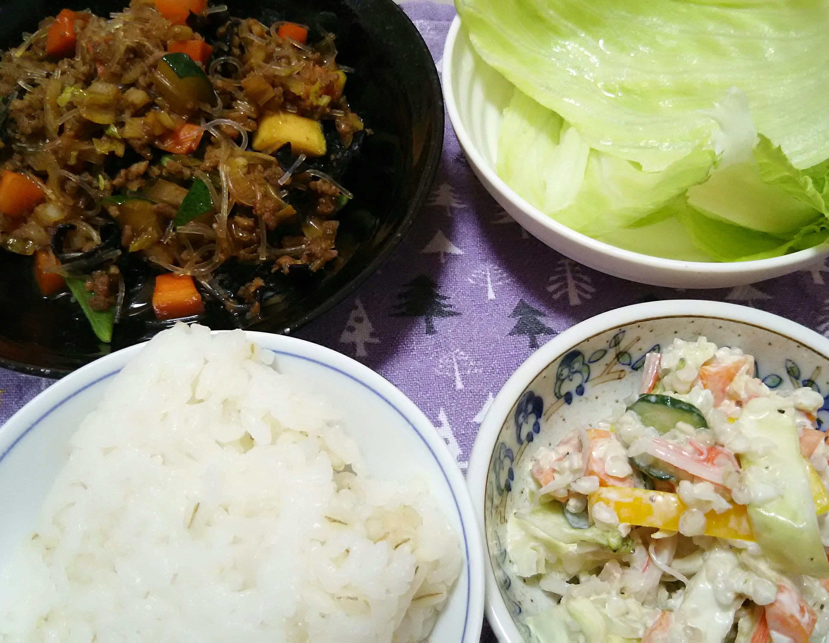 昨日の夕飯(6/18):挽き肉の甘辛炒めレタス包み他