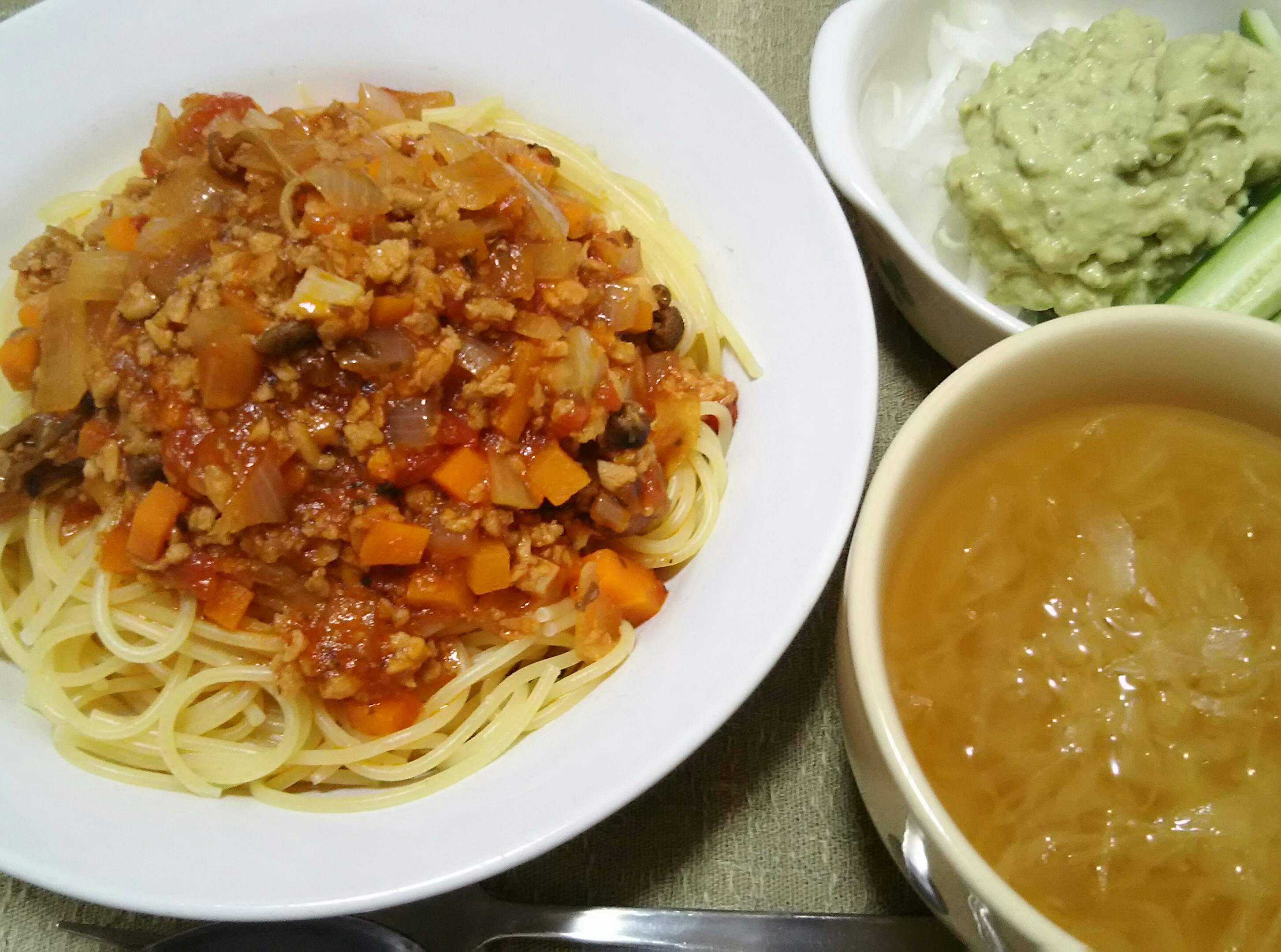 ミートソースは4割程度が大豆肉にしたのもあってか、あっさりした感じになったかもです。