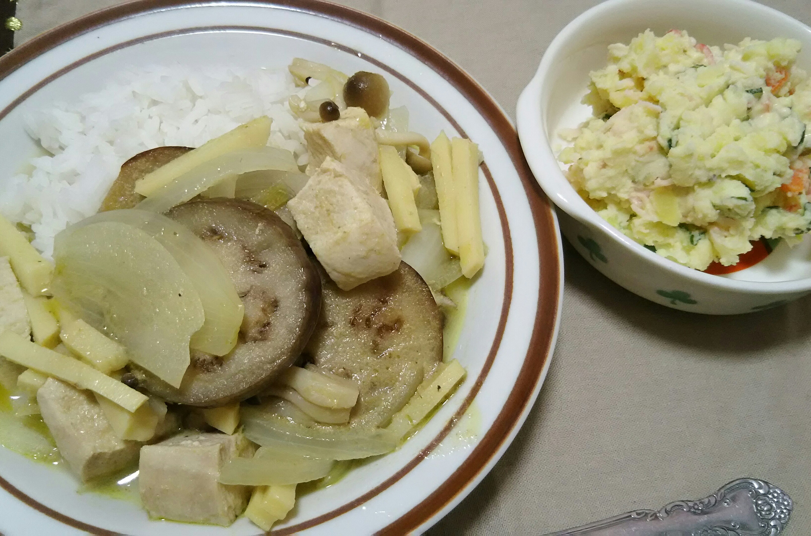 グリーンカレー、ポテトサラダ。