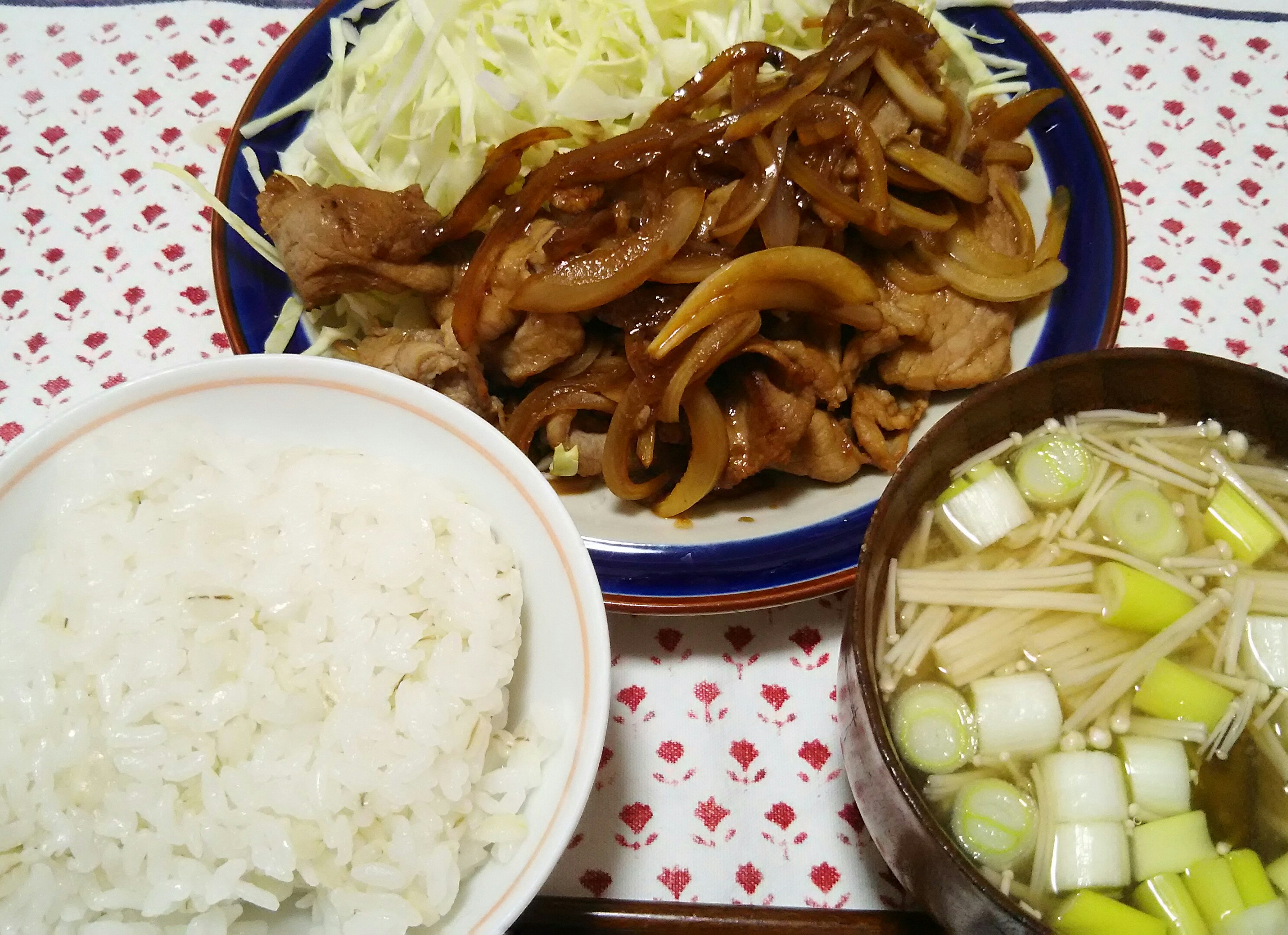 この日は豚の生姜焼き、長ネギとえのきの味噌汁で。