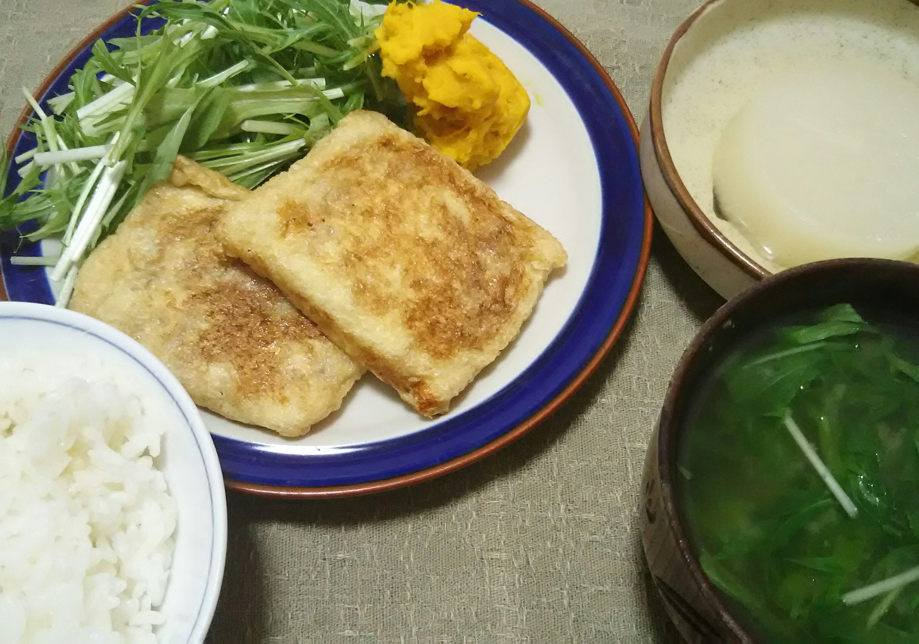 昨日の夕飯(4/16):揚げないミンチカツ他