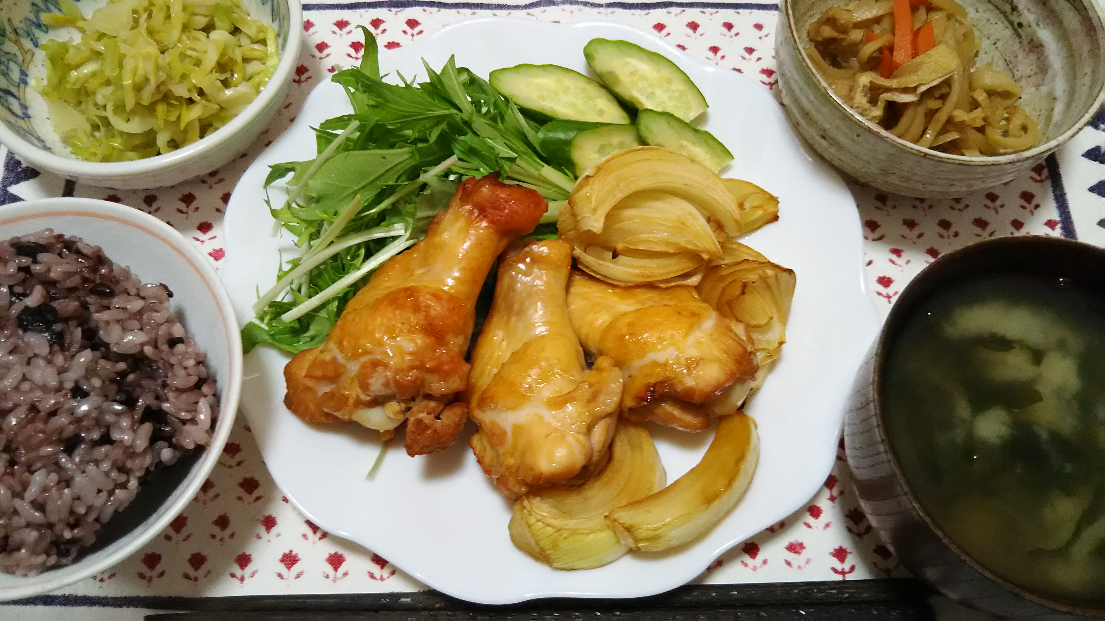 昨日の夕飯(3/26):手羽元のにんにく醤油グリル他