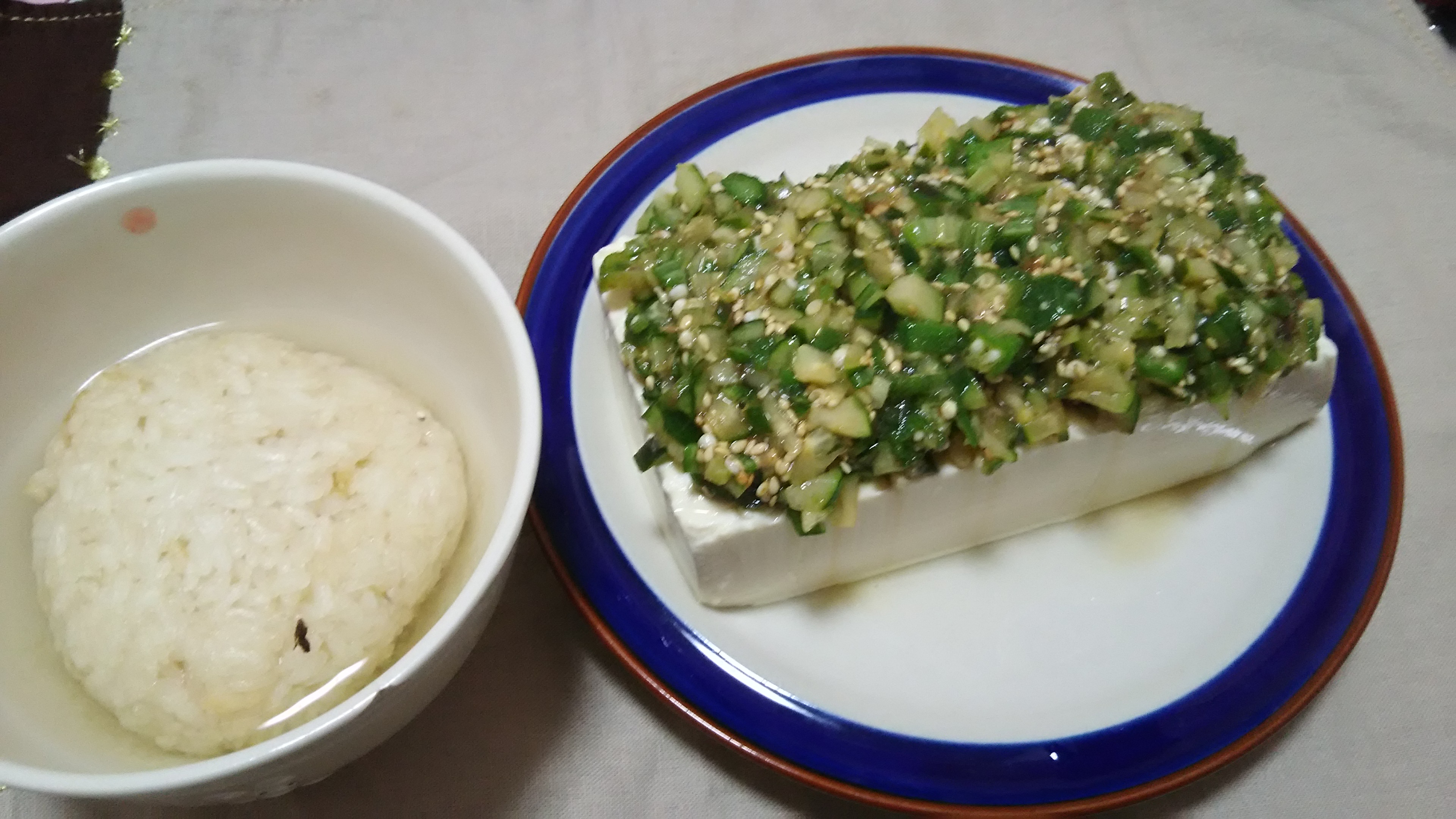 暑かったので、夏の定番メニューを前倒しで。具はオクラときゅうりに梅肉とめんつゆで。