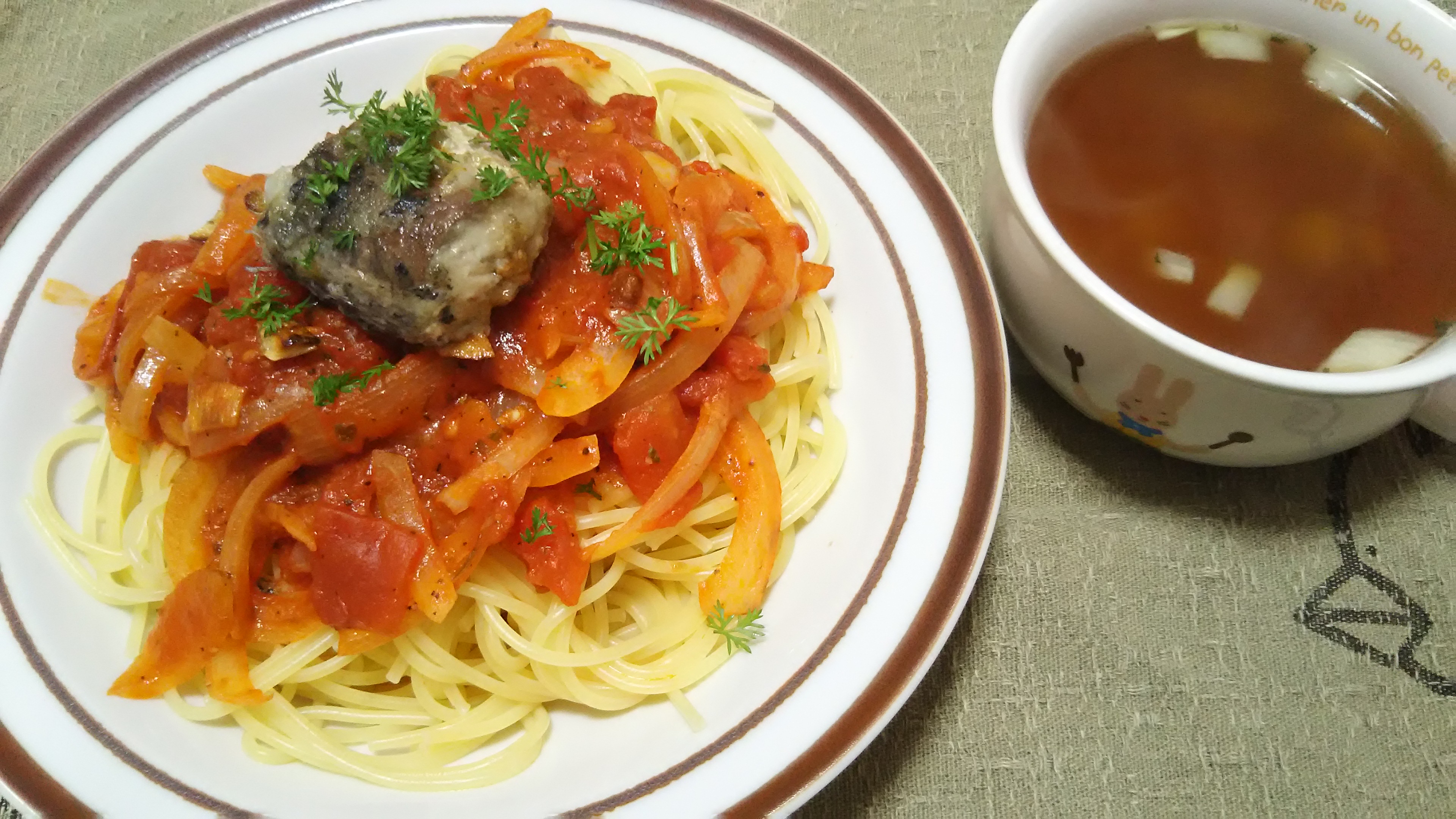 昨日の夕飯(3/14):鯖とトマトのパスタ他