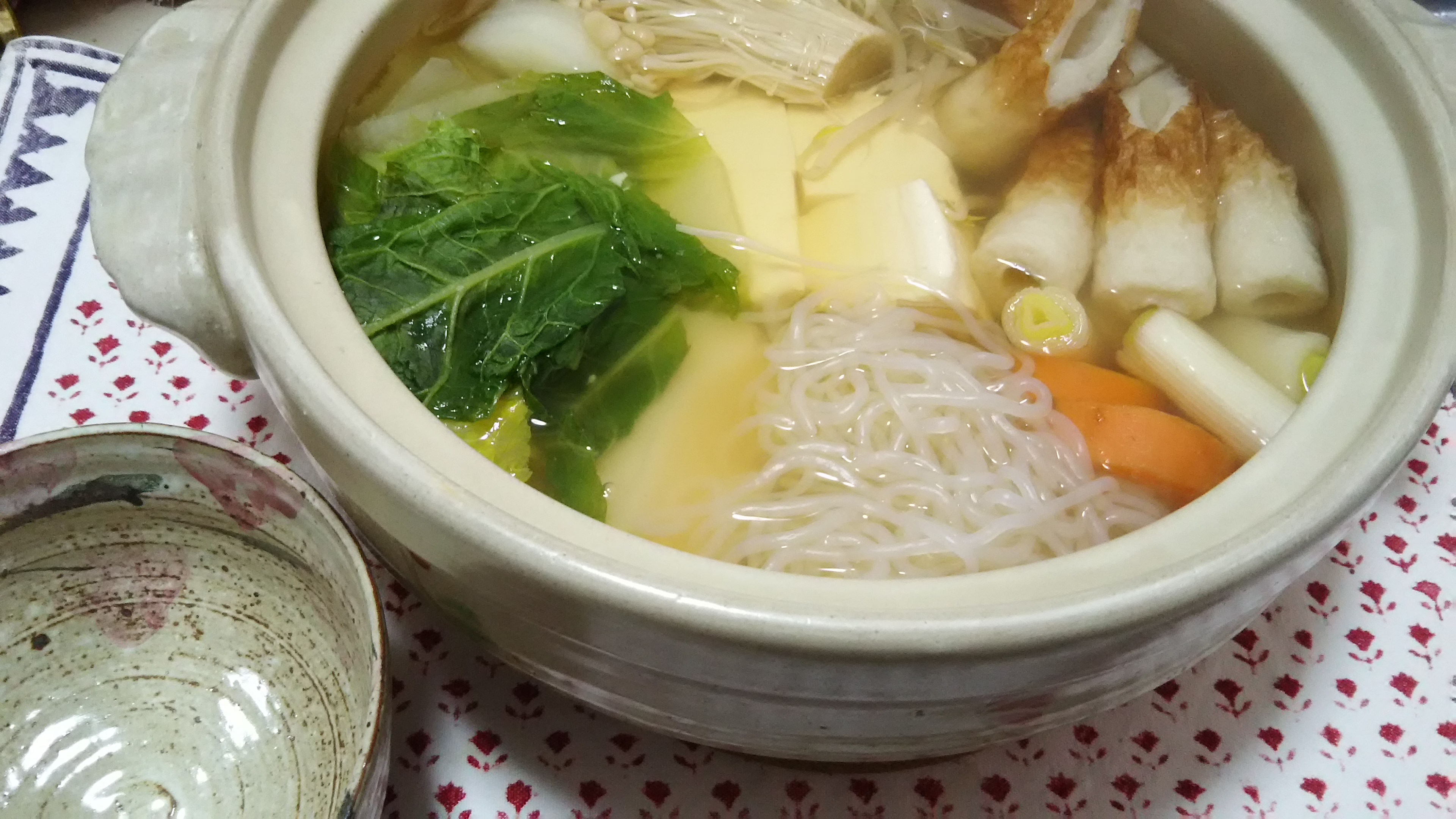 天候もあって、買い物に行けなかったので、家にあるものだけで鍋にしました。肉魚類が全く入れられなかった分、ちくわをあるだけ投入(笑)