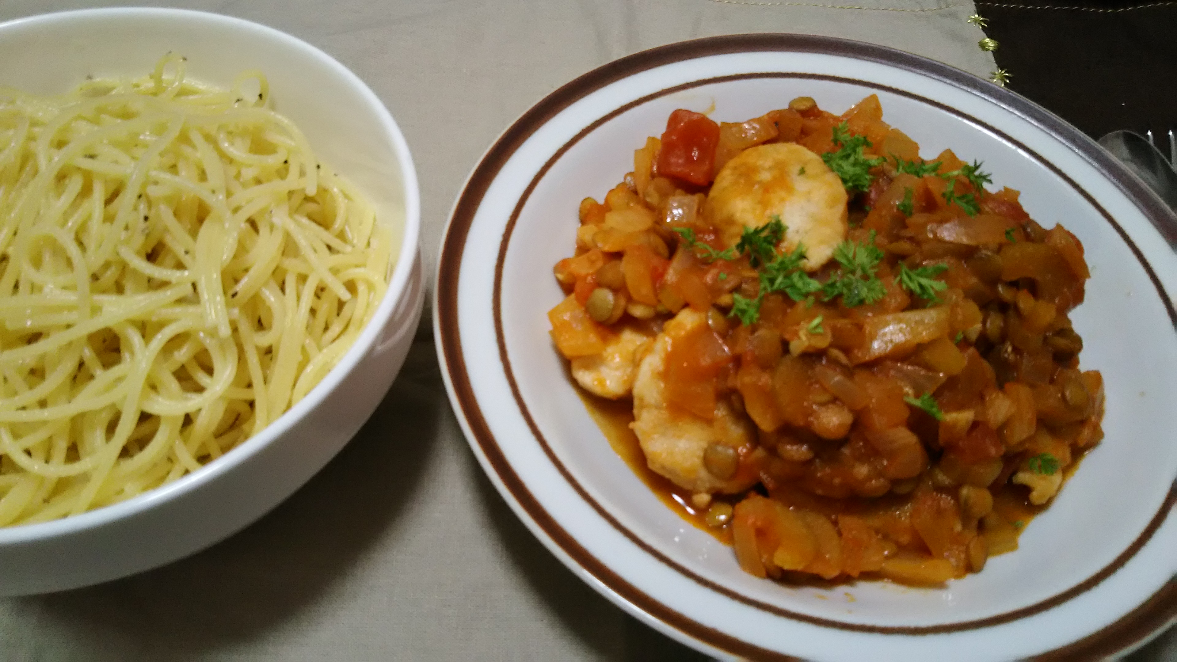 主食はご飯がなかったので、パスタに。