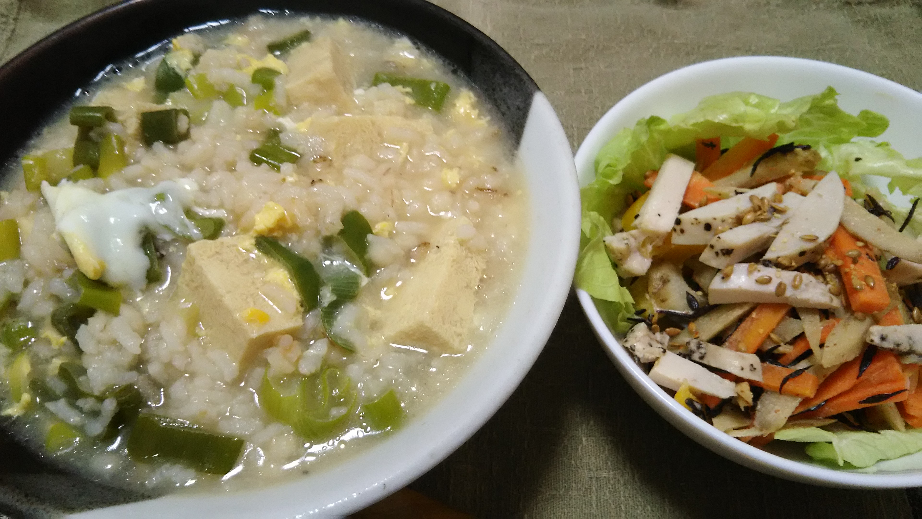 昨日の夕飯(1/10):凍り豆腐の雑炊他