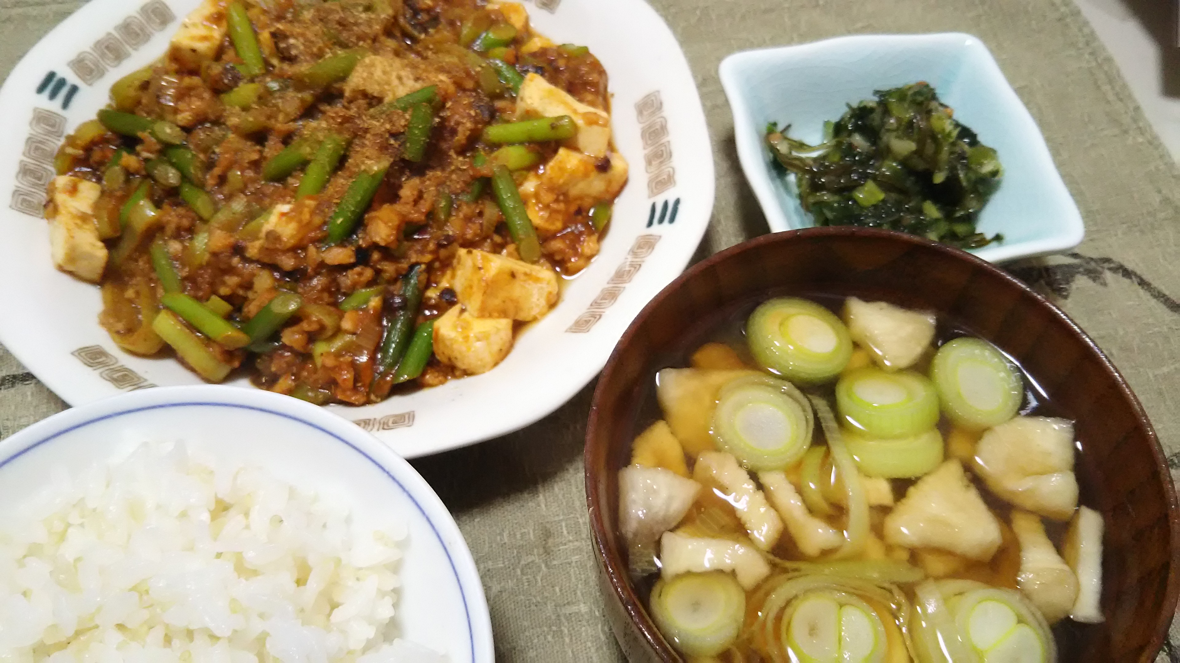 この日の麻婆豆腐は、久々にニンニクの芽を使えたので、スパイシーなものができたかと。
