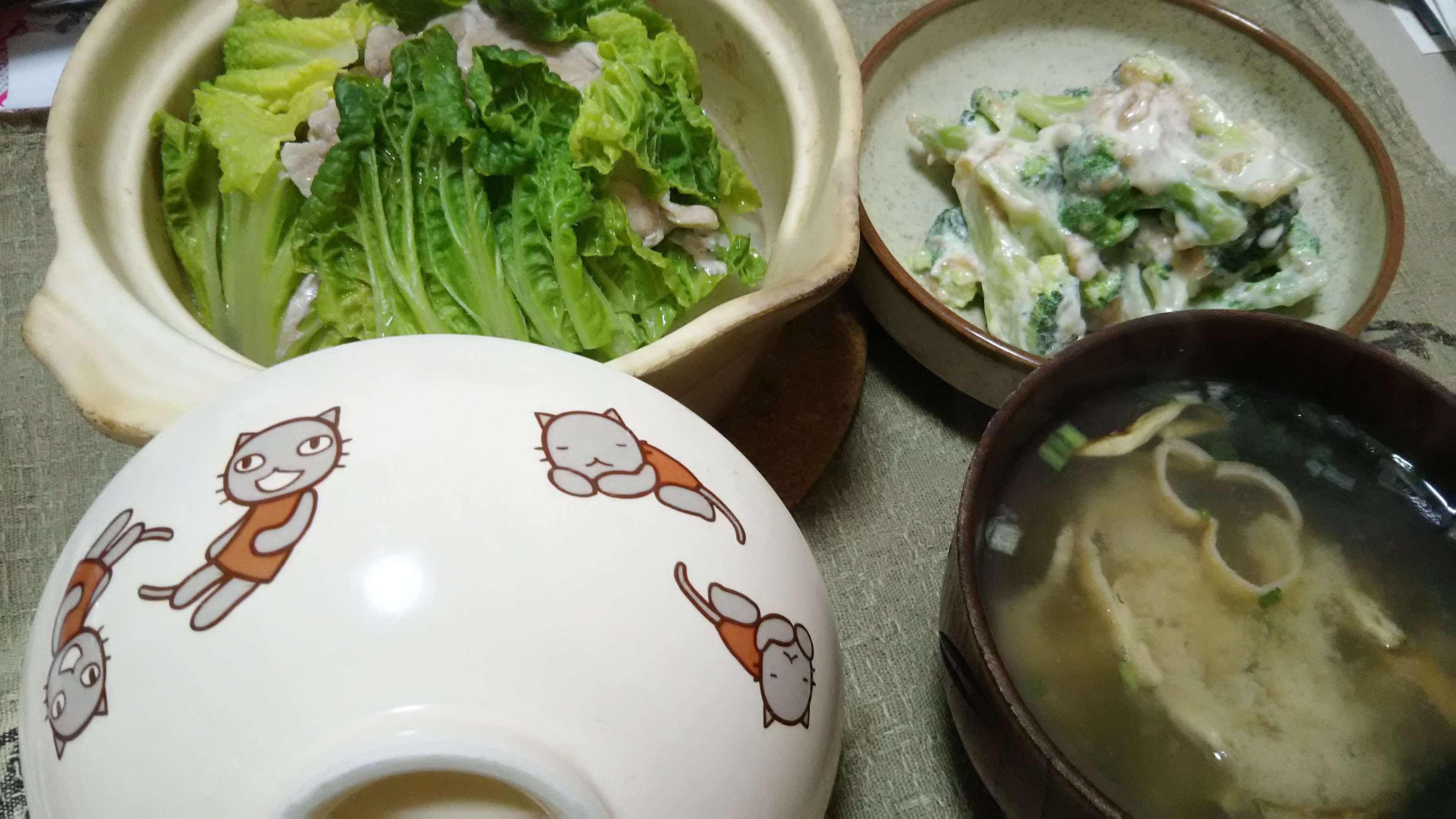 昨日の夕飯(1/12):野菜と豚肉のバター蒸し他