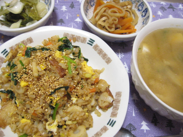昨日の夕飯(12/21):根野菜と卵の和風チャーハン他