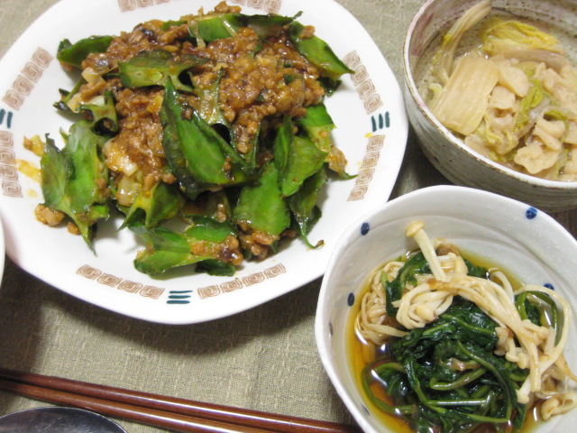 この日はベランダで夏からずっと栽培しているシカクマメがそろそろ終わりかけているので、これまで順次収穫してあった分を使って炒め物に。この野菜炒め物が一番美味しいと思います。これまでニンニク炒めとかしか作ってなかったので、この日はちょっと傾向を変えてひき肉と一緒に甘辛炒めにしてみたんですが、これもまた抜群に美味しい!この間スーパーで沖縄野菜として売っているのを初めて見ましたが、まだまだ認知度が低いのもあって結構お高めだった…あがれ、認知度!けど、来年もまた育てるけどね!(笑)