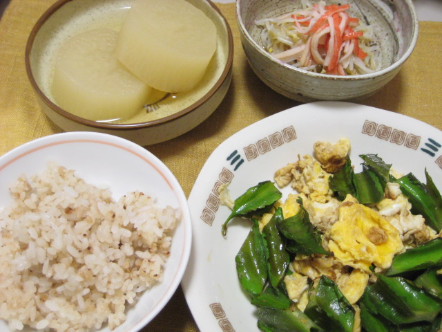 昨日の夕飯(10/7):シカクマメの卵炒め他