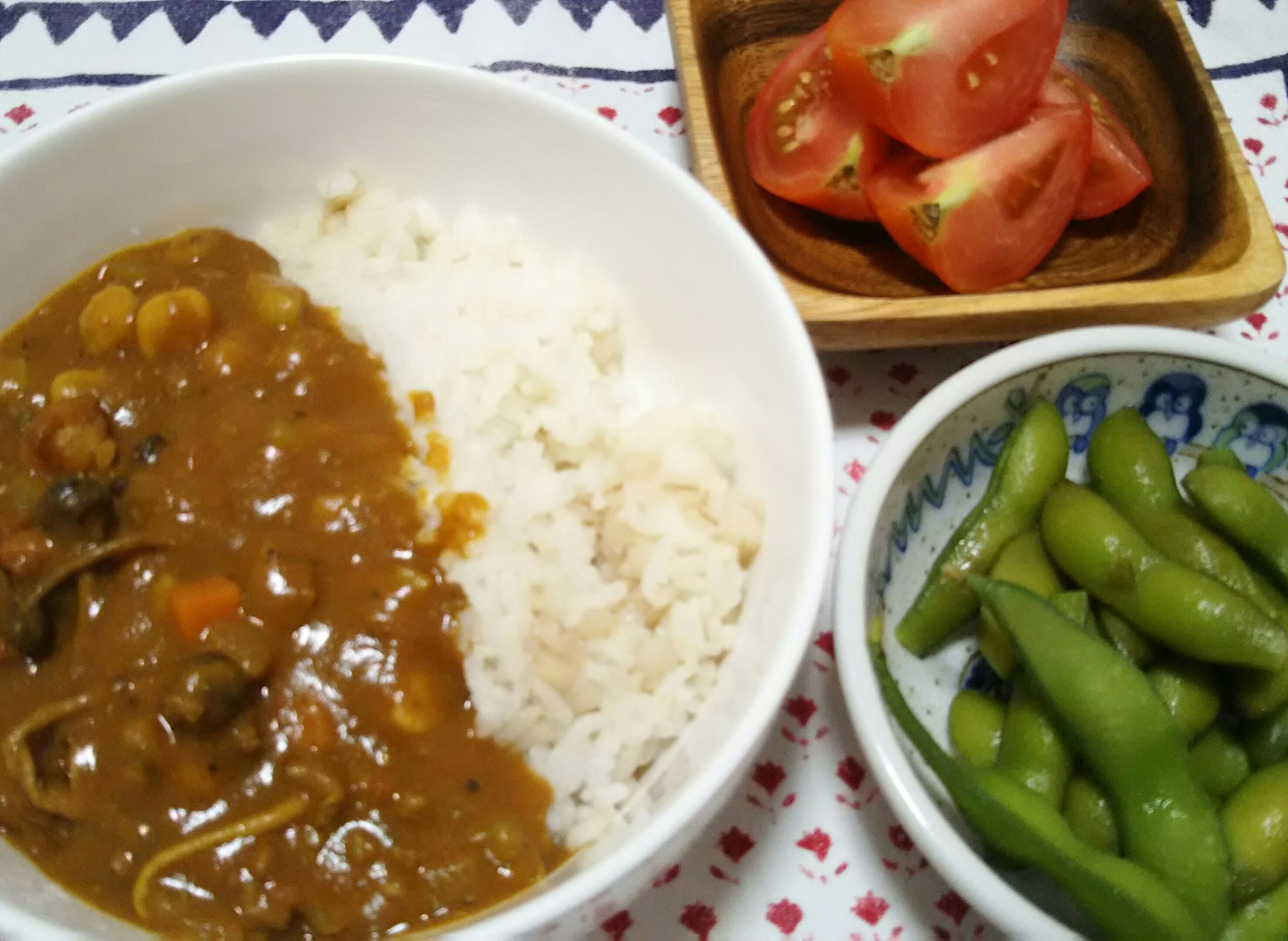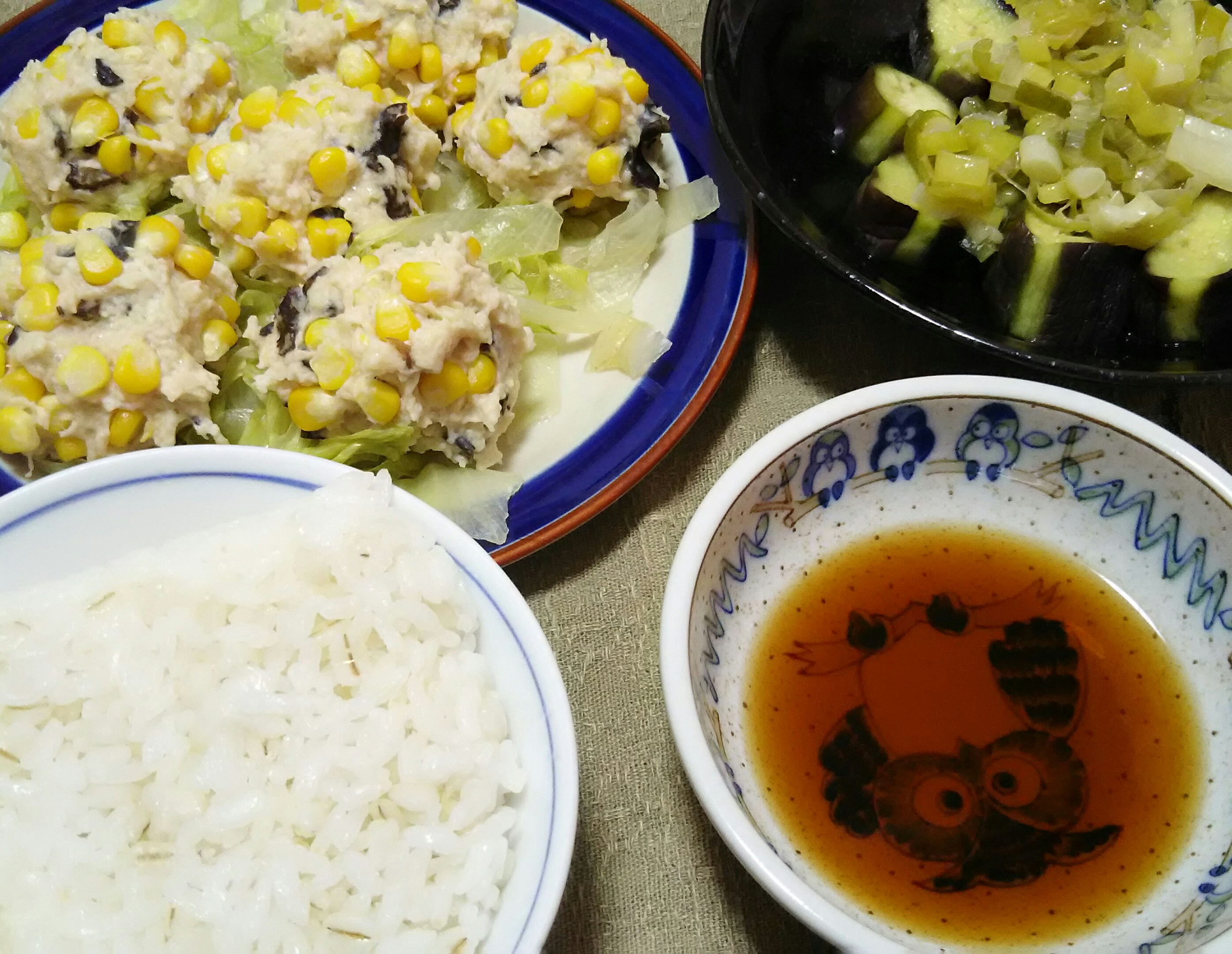 昨日の夕飯(7/24):とうもろこしと鶏挽き肉の蒸し団子他。