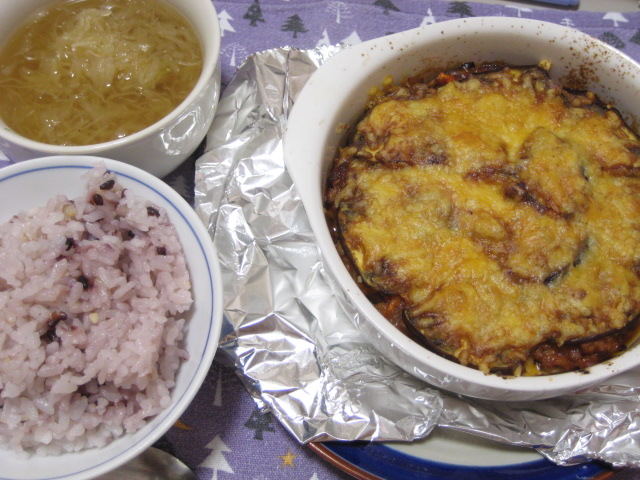 昨日の夕飯(8/5):賀茂ナスと挽肉のグラタン他
