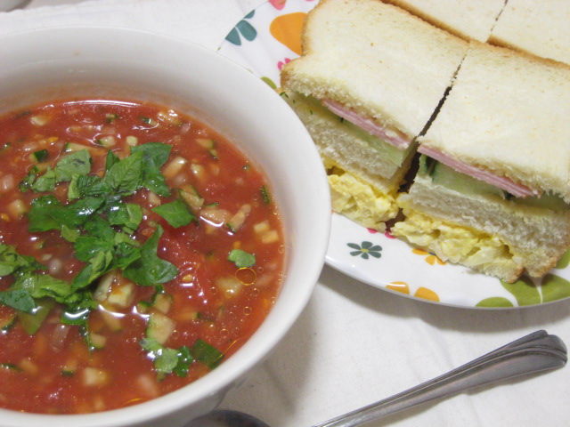 昨日は20時からPC前に詰めておきたかったので、手早く食べられるサンドウィッチに。ハムとキュウリ、茹で卵とキャベツ。