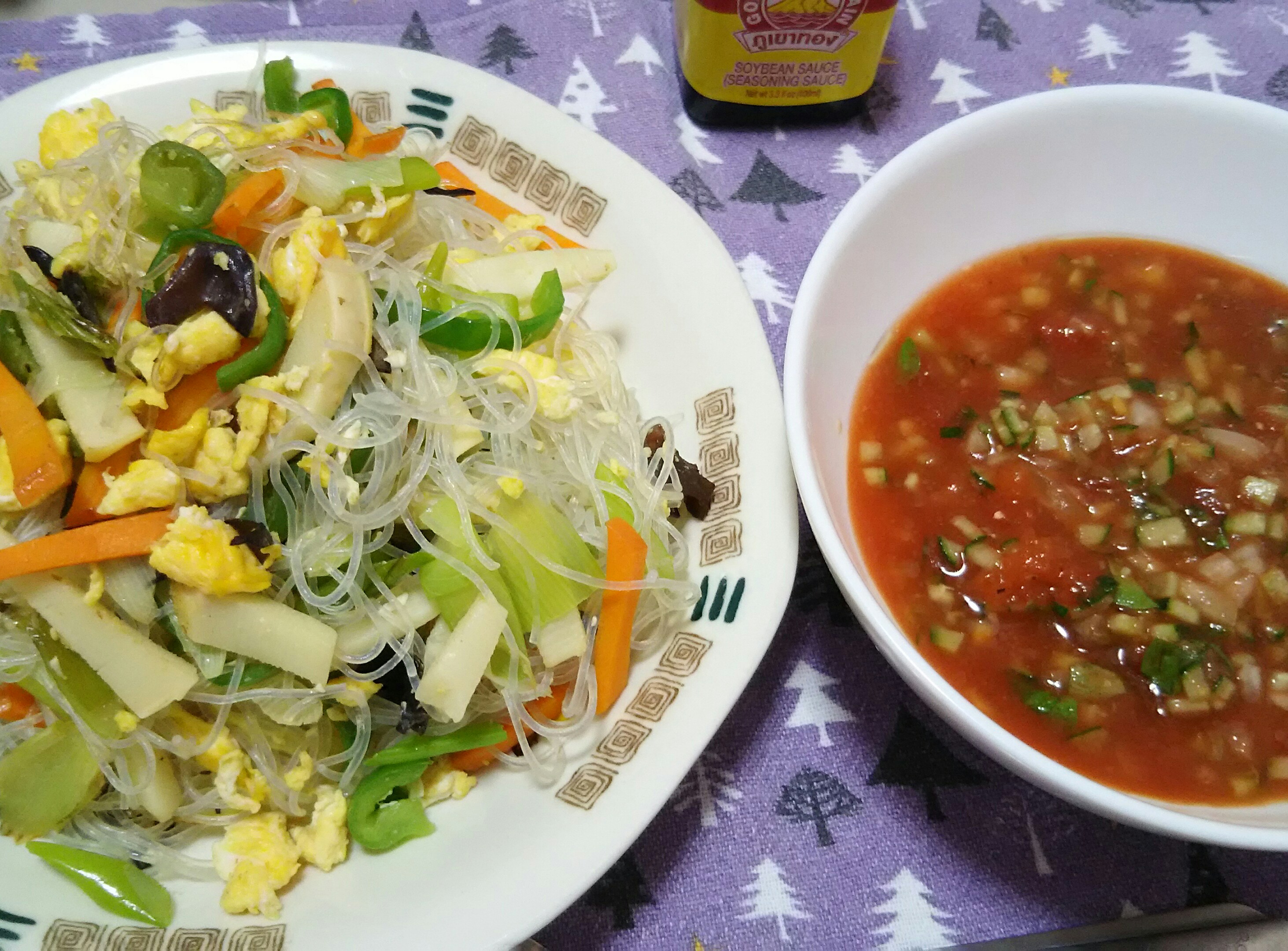ベトナム風焼き春雨(ミエン・サオ)、ガスパチョ風冷製スープ