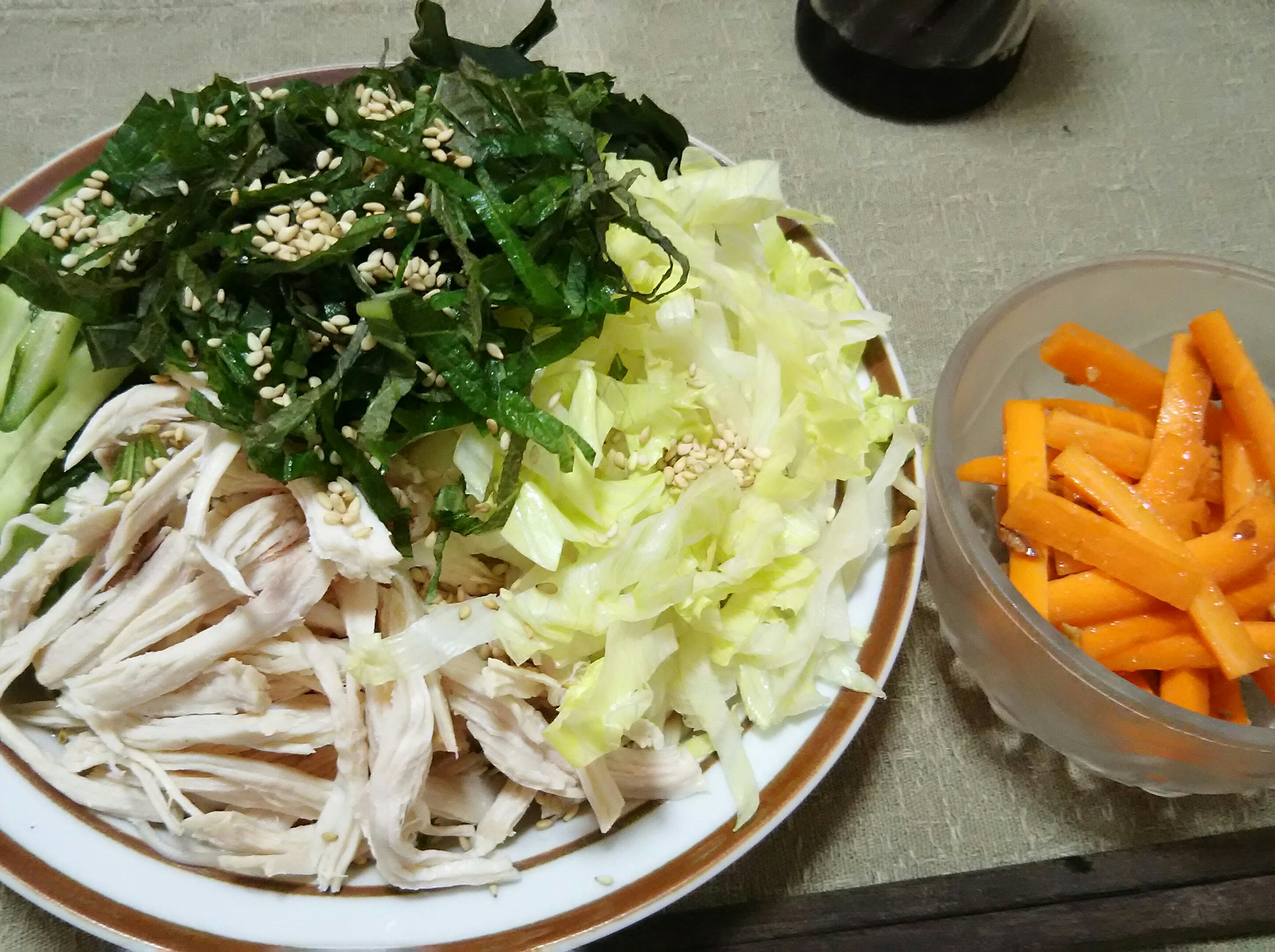 昨日の夕飯(6/29):蒸し鶏のサラダ他