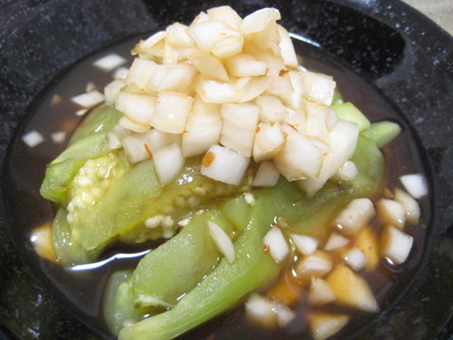 - 08/29 *蒸し茄子のピリ辛ネギソースがけ