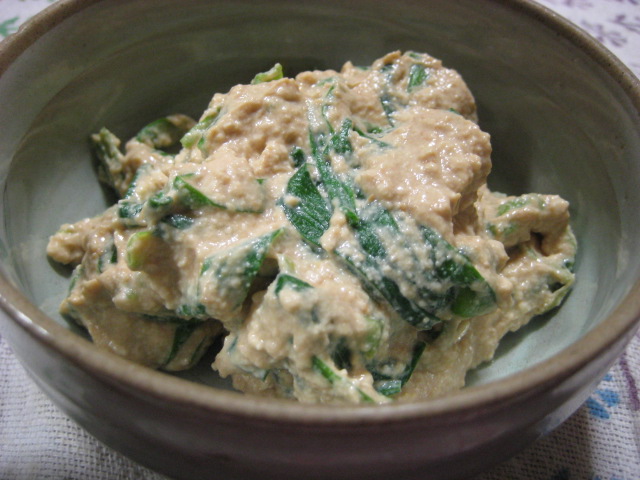 味噌は好きなものでOKですので、白味噌を使えば見た感じは白和えになりますね(笑)