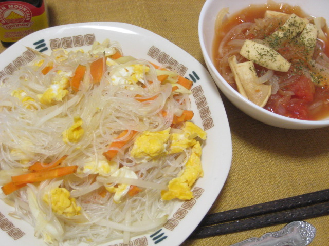 昨日の夕飯(10/17):焼き春雨(ミエン・サオ)他