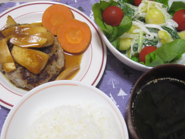 昨日の夕飯(10/19):レンコン入り照り焼きハンバーグ他