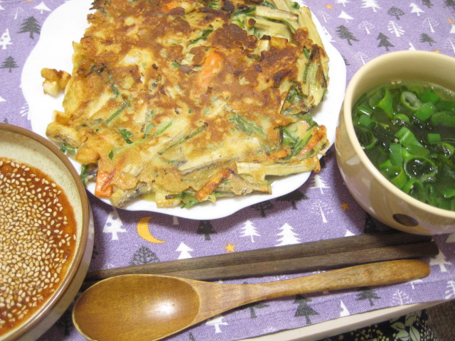昨日の夕飯(10/21):チヂミ(イカ入り)他