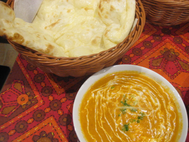 写真のものはチキンムグライカレーというチキンカレーの一種。生クリームとか入ってて、最初口にした時は、マイルド系?と思ったんですが、なんのなんの。あとからキッチリ来ました(笑)けど、溶き卵とかも入ってるので、辛さを低めにしてもらえば、結構甘口に化けそうなカレーではありました。これとあとエビマサラカレーというのをそれぞれ一品頼んだんですが、この店単品のカレーを頼むと、ナンかライスにサラダ、1ドリンクがサービスでくっついてくるので、もうそれだけでお腹いっぱいに(苦笑)カレー自体の量も、これまで行ったことのあるインド料理店の中では一番多かった気がする…基本的に食事を残すのはポリシーに反するんですが、ギブアップしました…。