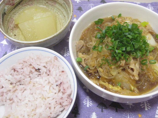 - 09/23 昨日の夕飯(9/22):白菜と春雨の炒め煮他