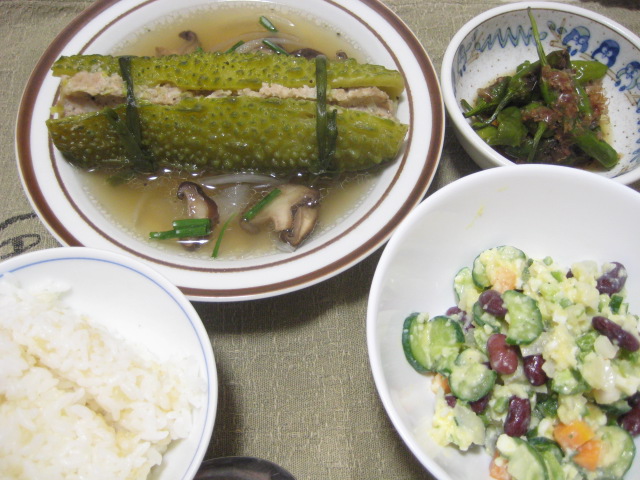- 08/07 昨日の夕飯(8/6):ゴーヤの肉詰めスープ煮込み他