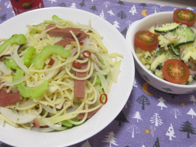 - 07/28 昨日の夕飯(7/27):ゴーヤとスパムのパスタ他
